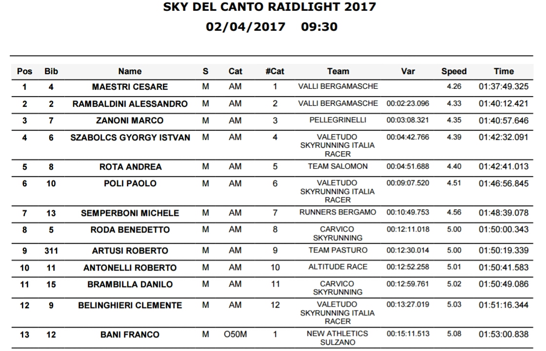 Ancora Franco Bani è protagonista della trasferta bergamasca, alla Sky del Canto infatti FRANCO ha guidato il drappello dei 13 NAS al via chiudendo in 13esima posizione assoluta, ma dominando la Over 50.